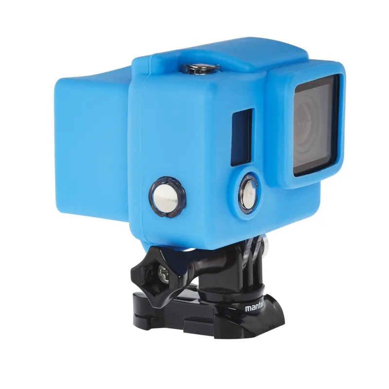 This high-quality silicone cover also protects your GoPro Hero 4 or 3+ housing against bumps, scratches and other impact damage. At the same time, your action cam is easy to find thanks to the striking blue colour. If you want it to be less conspicuous, there is another cover in the set that is black. This silicone protection cover is simply pulled over the underwater or skeleton housing. You maintain full access to the controls, and can use a back pack unit.