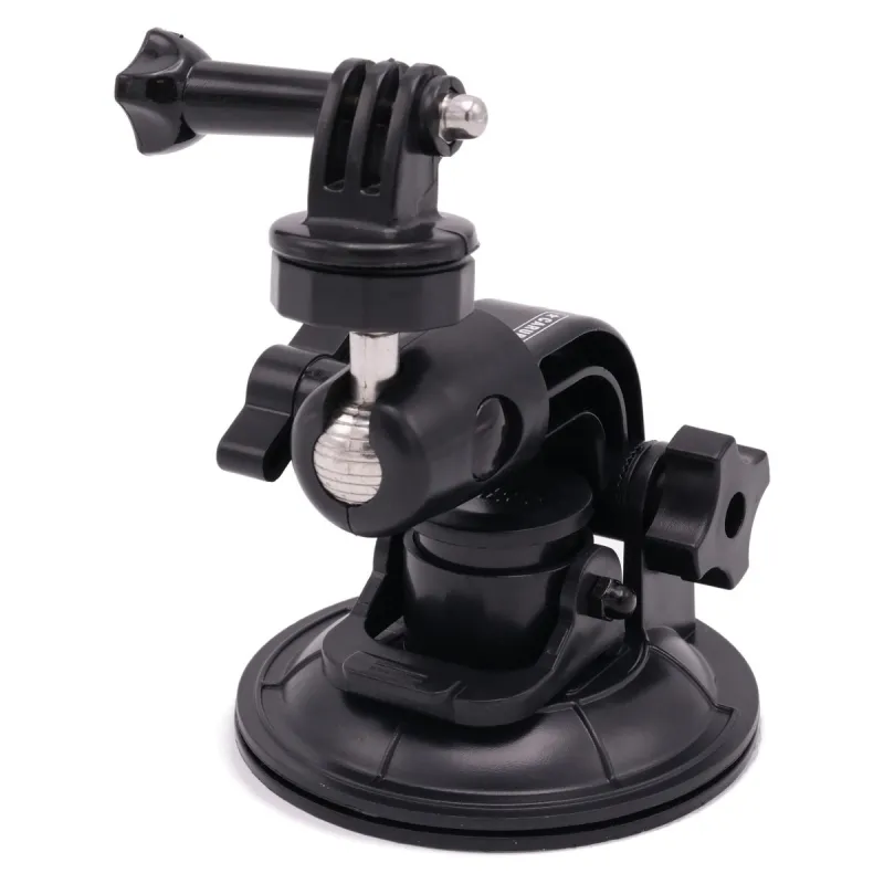 Solid suction cup mount Your camera or action cam is securely attached to your car window with the Suction Cup PRO Mount and you dont have to worry about the mount falling off the window. Due to the materials used, the suction cup is strong enough to pull any dents from your body and the Caruba PRO mount can even be attached without worries to an aircraft that will fly at a speed of about 200 km / h. The rotating head of the mount also makes it easy to adjust the camera angle for even better shooting results. ,