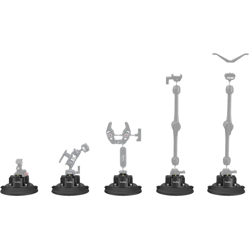 Alumīnija sakausējuma piesūcekņa kameras stiprinājums ir aprīkots ar tādiem piederumu montāžas punktiem kā 1/4"-20 vītņotie caurumi, 3/8"-16 vītņotie caurumi un ARRI 3/8"-16 atrašanās vietas noteikšanas caurumi, lai piestiprinātu SmallRig: 3757, 3873, 3874, 3875, 2906, 2070, 2115 utt.
