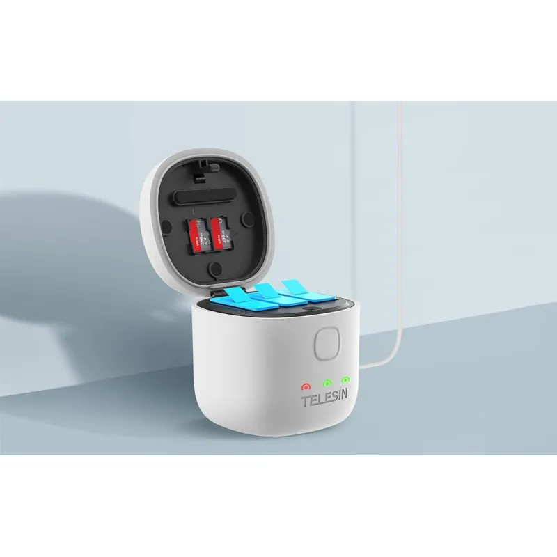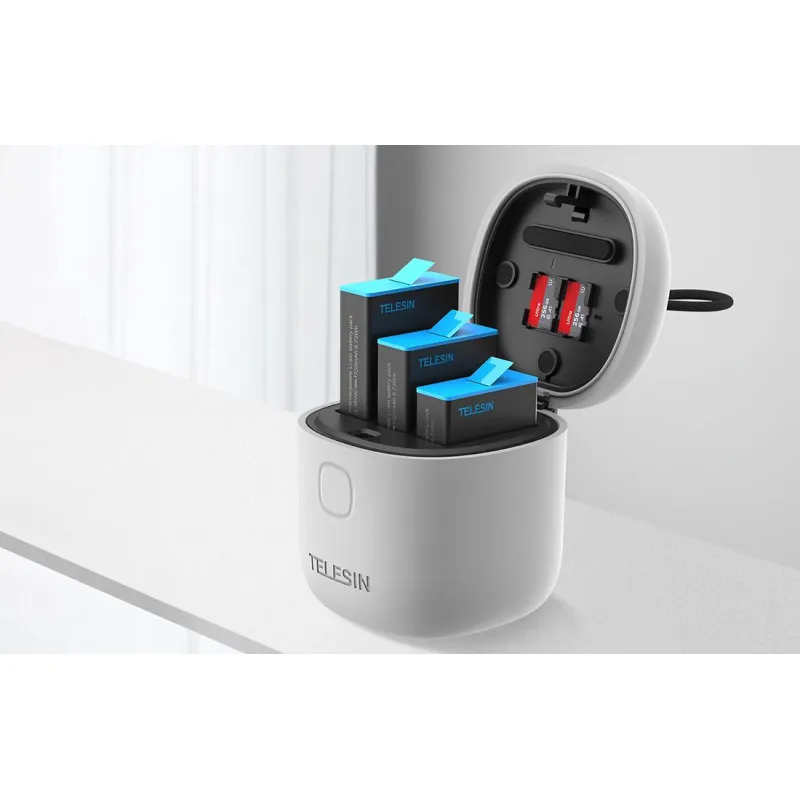 Šis praktiskais Telesin komplekts atvieglos GoPro Hero 9 lietošanu. Lādētājs nodrošina ātru līdz pat 3 akumulatoru vienlaicīgu uzlādi. Tas izrādīsies noderīgs arī kā atmiņas karšu lasītājs – ļauj veikt tūlītēju failu pārsūtīšanu. Tas ir arī ārkārtīgi viegls un parocīgs, un, pateicoties IP54 ūdensizturības pakāpei, varat to izmantot katru dienu bez raizēm.