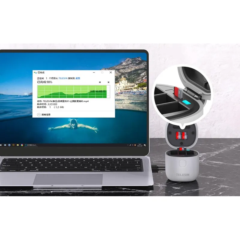 Do you need a reliable TF card reader? The Telesin brand charger will not let you down either. It supports ultra-fast file transfer protocol over USB. To copy 1 GB of data, it only takes a minute! This multifunctional device will therefore prove indispensable in many situations.