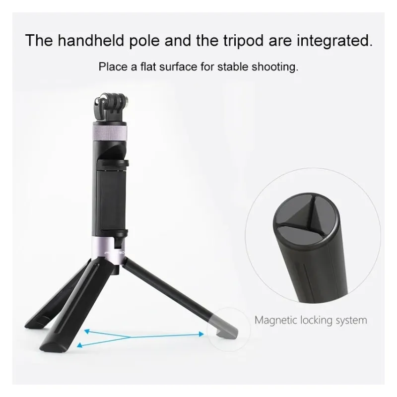 Statīvs ir aprīkots ar neslīdošu tālruņa turētāju, kas atvieglo tālruņa skatīšanos no kameras. Izvelkamajām kājām papildus ir magnētiskā fiksācijas sistēma, kas garantē aksesuāra kompaktumu, kad to izmantojat kā rokturi.