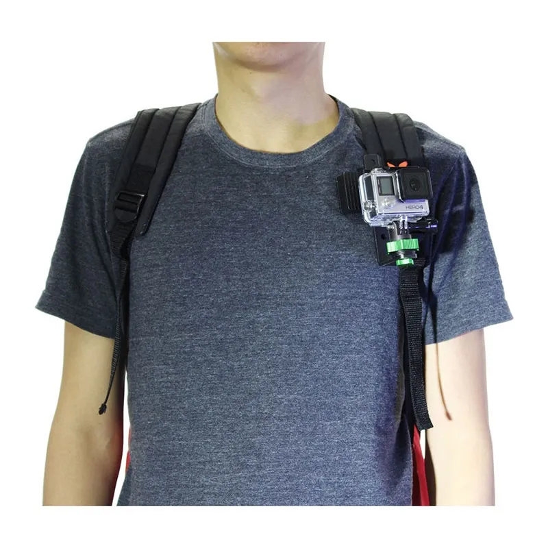 Rīcības kameras plakanā skava ir ideāli piemērota aprīkojuma montāžai uz auduma vai siksnām. Tam abās pusēs ir 1/4 -20 caurums ar vītni, ko var izmantot, lai tieši pie skavas piestiprinātu piederumus, piemēram, darbības kameras L-veida kronšteinu vai ātro montāžas leņķa savienojumu.