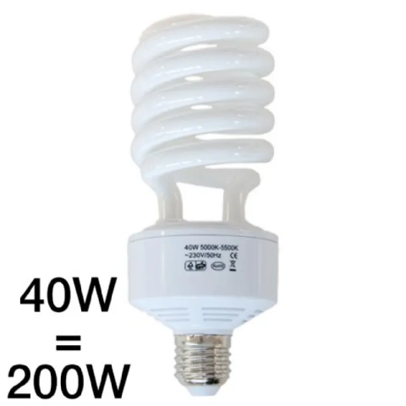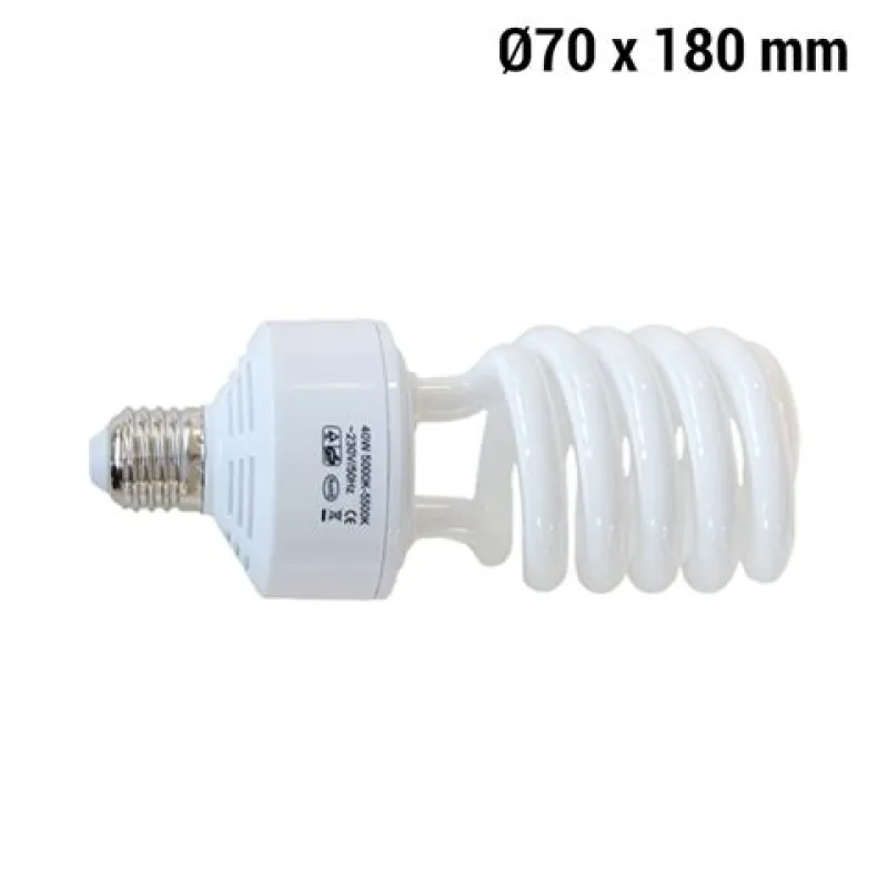 The Falcon Eyes ML-40 40W Daylight Lamp is equipped with an E27 socket, the ML-40 spiral daylight lamp provides a stable color temperature of 5500K.