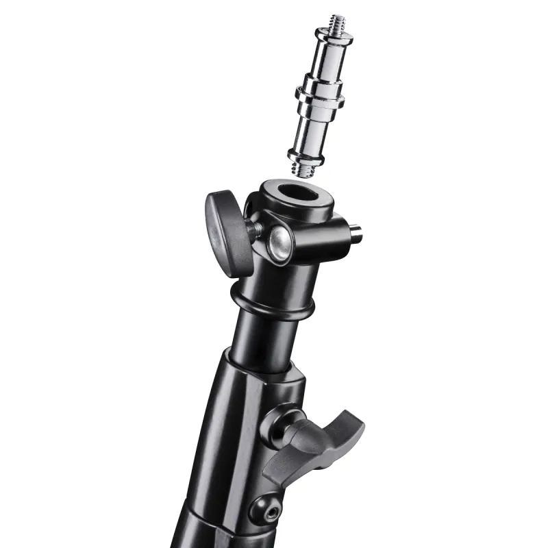 The walimex pro Lamp Tripod AIR is a high-quality solution for studio photographers. The excellently processed tripod can be used portably and flexibly. You can use studio flashes or reflectors up to a weight of 15kg. The air cushioning is the special feature on this tripod, because it provides the necessary reliability when lowering the individual elements. The thread mount is removable and has a 5/8 spigot with 1/4 and 3/8 inch thread. It can be attached either on the top of the tripod or at the side, so that a use of e.g. telescopic arms is also possible. You will be even more flexible in your studio.