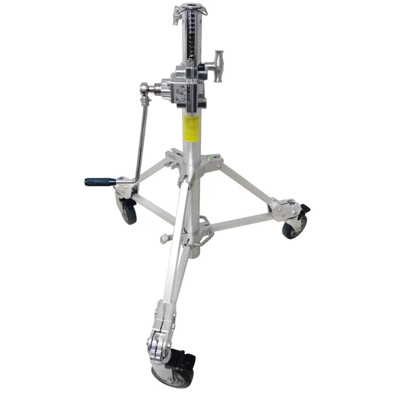KUPO 721 JUMBO STAND 2 SECTIONS ar bremzējošu riteni ir augstākās klases produkts, kas atbilst nozares standartiem drošai, smagajai darbībai. Izgatavots no hromēta tērauda, šis statīvs var atbalstīt maksimālo slodzes ietilpību 100kg (220lb) un sasniegt maksimālo darba augstumu 1.75m (5.83ft), kad tas ir pilnībā izstiepts.