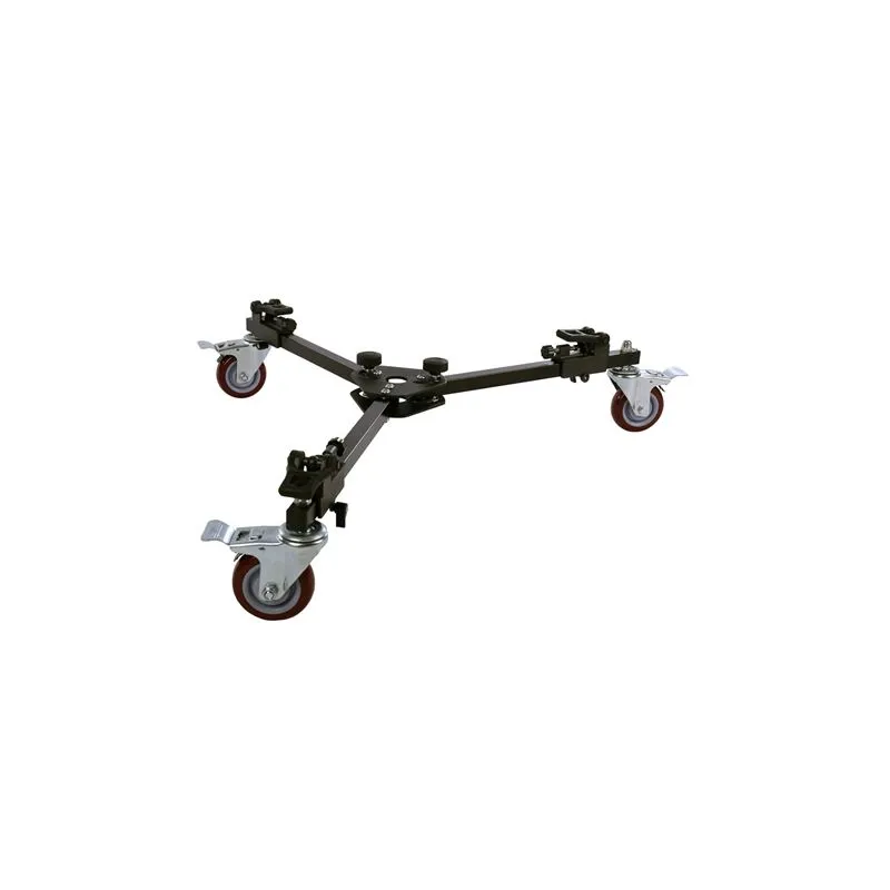 The Falcon Eyes PT-80 Heavy Duty Universal Tripod Dolly is compatible with most light stands and tripods and is particularly suitable for heavy-duty light stands and tripods. The PT-80 has a maximum loading capacity of 80 kgs making it suitable for use with heavy-duty studio equipment. The PT-80 is equipped with adjustable screw clamps, enabling you to secure almost any light stand or tripod. The wheels are lined with rubber to prevent damage to the floor and equipped with a brake, enabling you to position the PT-80 where you wish. When folded, the PT-80 has a length of 57 cm making it suitable to take with you on location.