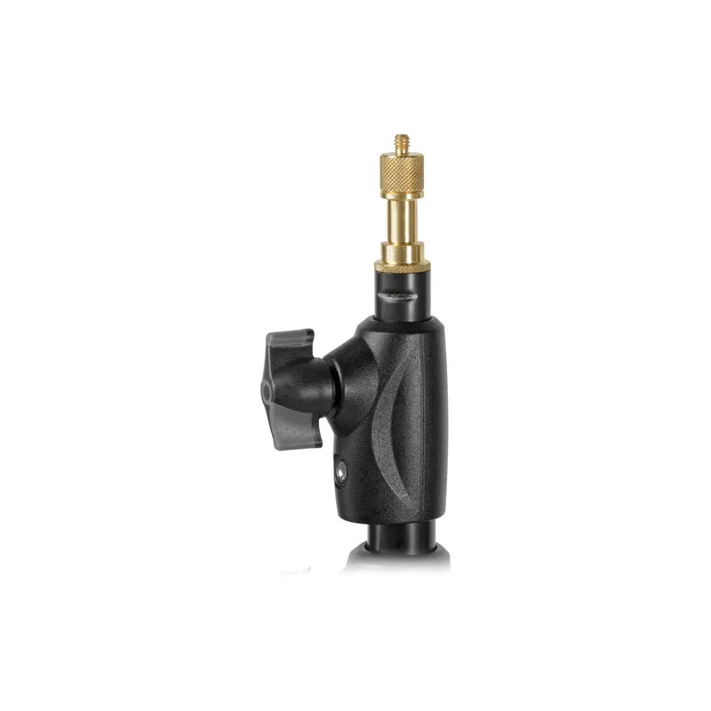 The tripod has 4 sections with 3 risers. It features air cushioning so you can work quickly without having to worry about damaging your equipment due to accidental riser release. With a wide opening up to 107 cm, your images will be stable even on rougher terrains. It also comes with standard and easily compatible accessories, containing a 16 mm (5/8") top pin and a 9.5 mm (3/8") or 6.4 mm (1/4") thread. Its impressive height range from 124 cm to 366 cm allows you to elevate your lighting rig to new heights!