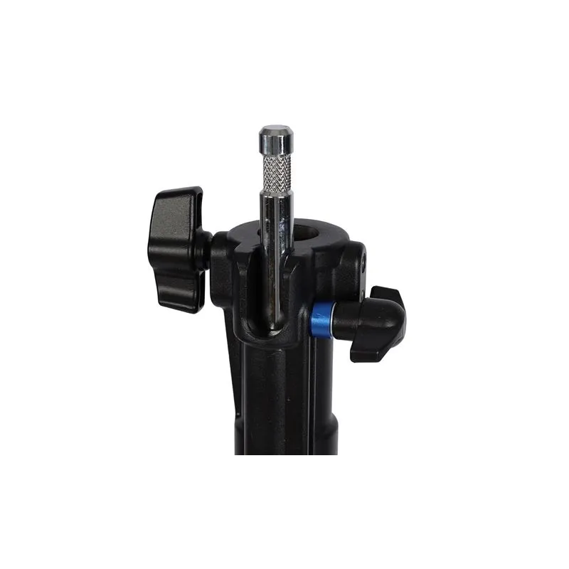 On the tripod you can place an LED lamp for example, because of the wheels of the tripod you can easily change the direction of the light when you move the FPT-3605A. Also mounting a reflector is one of the possibilities. All these and other accessories can be placed on the telescopic spigot of the tripod. This spigot is not equipped with screw thread. On top of the tripod is an opening for an optional boom arm or spigot. These are secured using the wing nut and Allen screw on the side of the tripod.