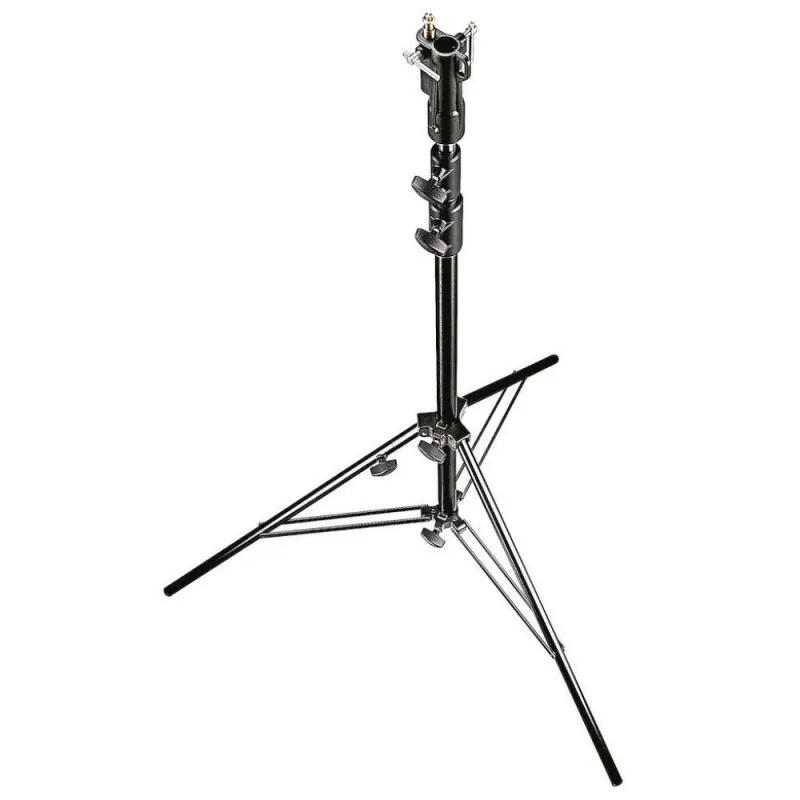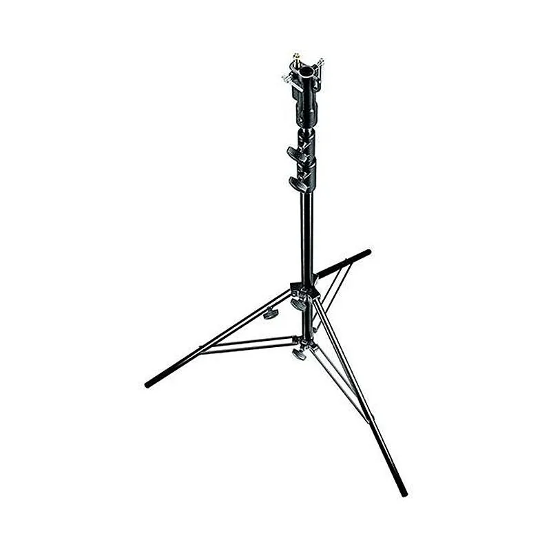 Melnais, anodizētais Manfrotto 007BUAC Alu Senior apgaismojuma statīvs ir apgādāts ar universālu 1-1/8" Posi‑V‑Lock Female ligzdu un uznirstošu 5/8" noņemamu Male tapskrūvi ar 3/8 un 1/4"-20 vītnēm.