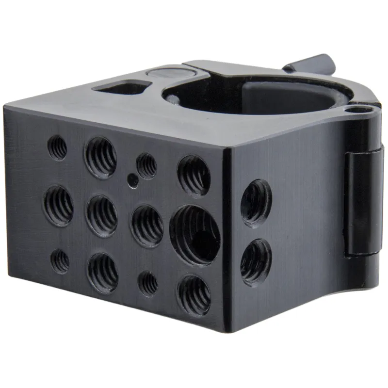 Izgatavots no alumīnija ekstrūzijas, šis savienotājs ir aprīkots ar noņemamu gumijas spilventiņu iekšpusē, ļaujot tam pielāgoties jebkura caurules izmēra vai gimbal stūres diametram, kas ir 25mm vai 30mm. Galvenajā bāzē ir dažādi vītņoti caurumi, tostarp