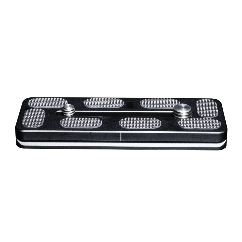 A quick-release plate (also called a camera plate) is often used in photography and video shoots and is a very practical accessory for tripod heads. Frequently screwing the tripod on and off the tripod (for example, when using several cameras), is often time-wasting and disruptive. This problem can be solved by using this quick-release plate. These plates are screwed on to the camera housing using the existing thread screw (1/4 inch) and then simply remain on the camera.