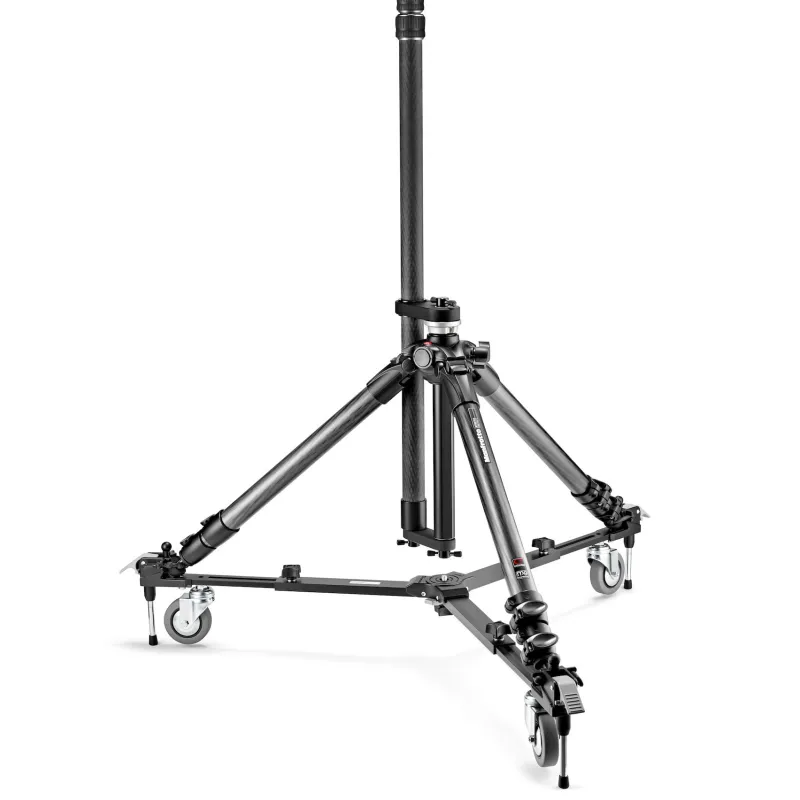 This Dolly is perfect used in combination with light and medium-weight tripods. Within the VR range it’s compatible with the Manfrotto VR Big Carbon Fiber Base. It has adjustable legs, which allow its footprint to vary from a minimum of 78 cm to a maximum of 114 cm. Its large 76mm wheels enable smooth rolling movements and also have a safety-lock feature that clears the wheels off the ground so that the dolly rests on separate feet, allowing this support to stay perfectly stable and solid.