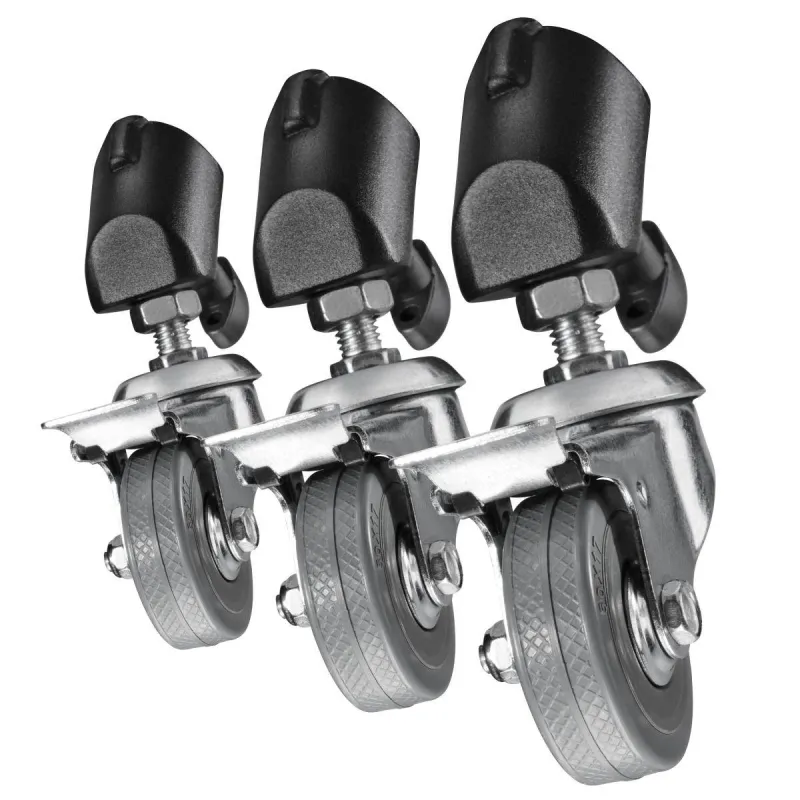 The three walimex pro tripod wheels Pro are ideally suitable for the use on wood as well as on carpet. After mounting on your tripod, it helps you to move your tripod with lighting without any problems.