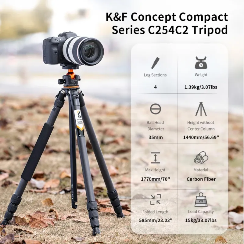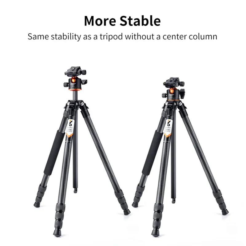 To ensure the tripod with the same stability as a tripod without a center column, K&F Concept A254C4+BH-35L Carbon Fiber Tripod is designed with an embedded locking base so the tripod legs can be locked tightly and provide amazing pro-level stability.