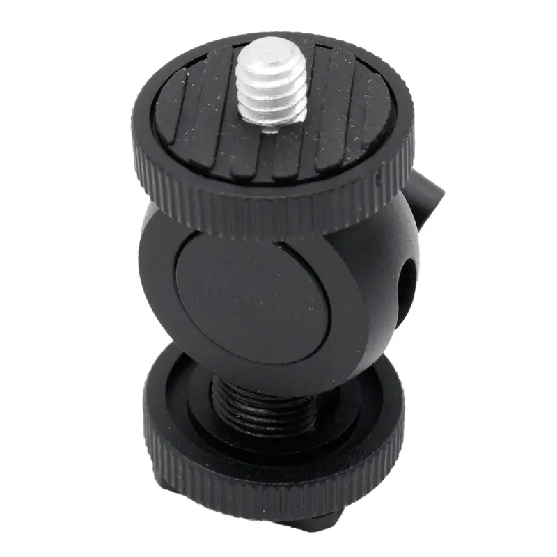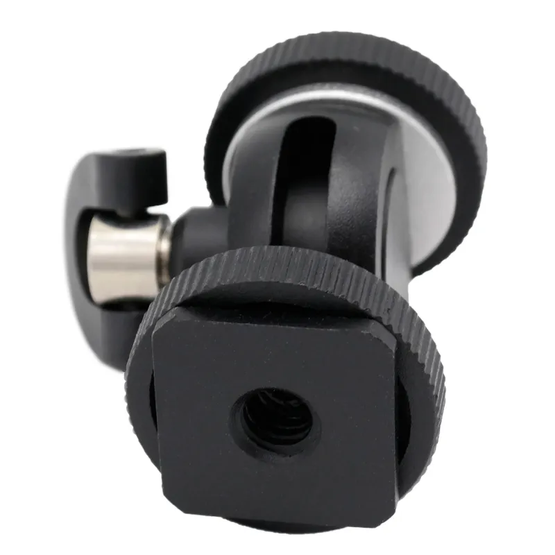 The Caruba Mini Bracket - Tilt can be used to tilt and secure a camera and accessories. The tilt head with coldshoe can be rotated 360 degrees and tilted 180 degrees. The top of the Mini Bracket has a 1/4"-20 thread on which you can place a camera or other accessories with a 1/4"-20 thread connection. The bottom side of the Mini Bracket is equipped with a coldshoe with a 1/4" threaded connection.