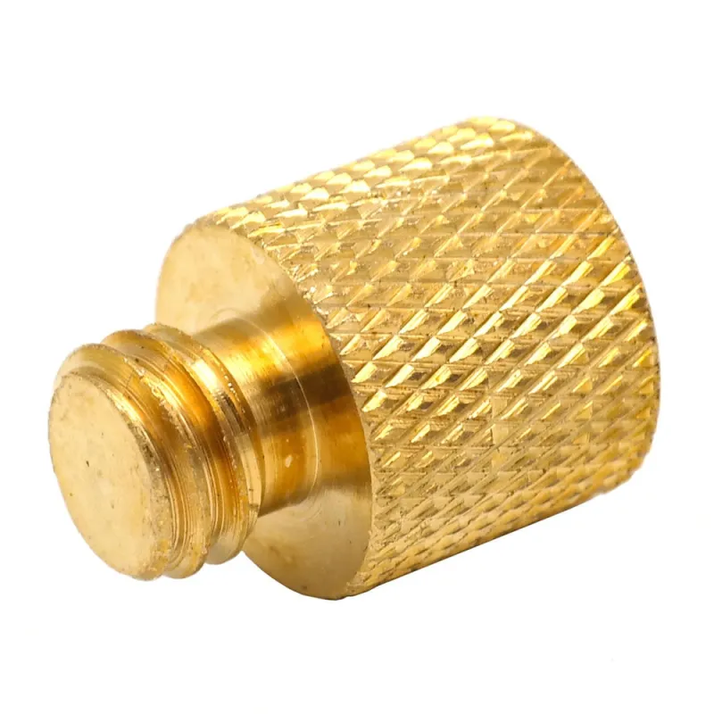The Caruba Adapter Screw 3/8"M - 1/4"F - Brass is a spare or extra screw with a 1/4" female and a 3/8" male thread for use with cameras, tripods and flash brackets. The large round head with serrations makes it easy to tighten the screw. The screw is made of brass.