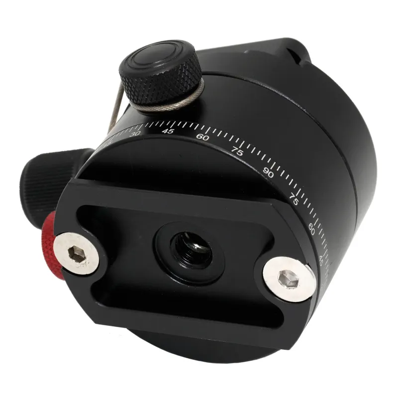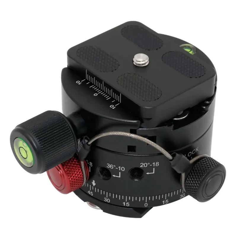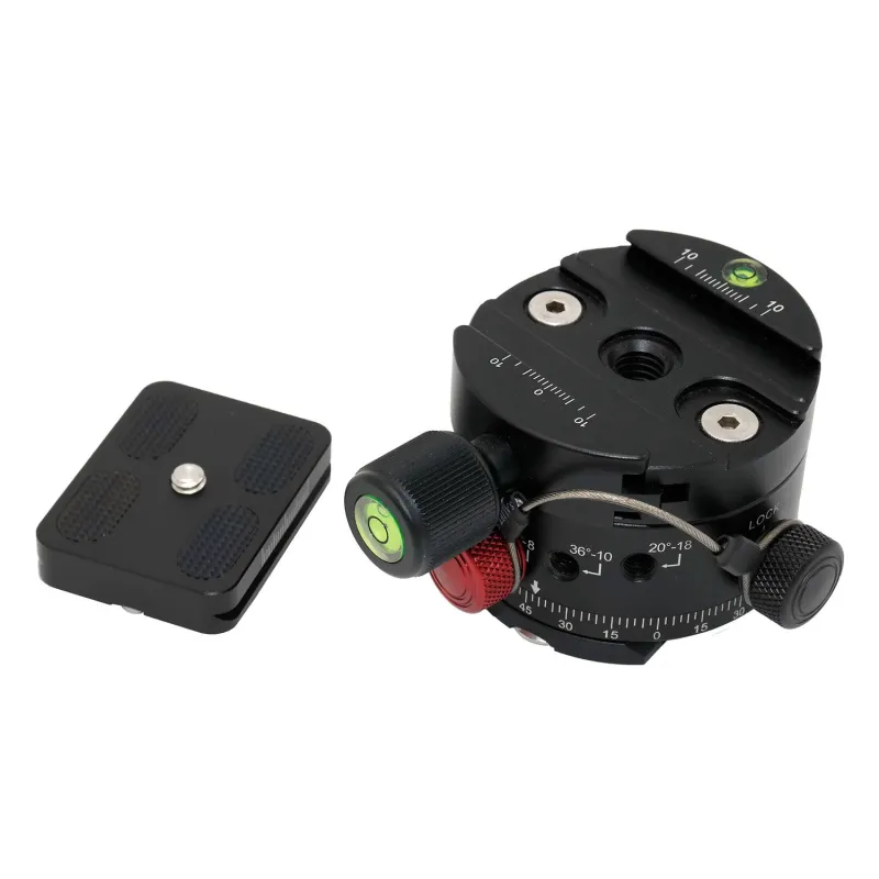 The Caruba Panorama Head Click System - Double Quick Release (DH-60) meets the highest requirements for taking high-quality panorama shots. The head is equipped with an indexing rotator with four interval options: 60°-6, 45°-8, 36°-10 and 20°-18. Lubricated bearings ensure smooth operation and laser-engraved index markings making it easy to fine-tune the head. This compact panorama head is ideal for HDR panorama shooting.