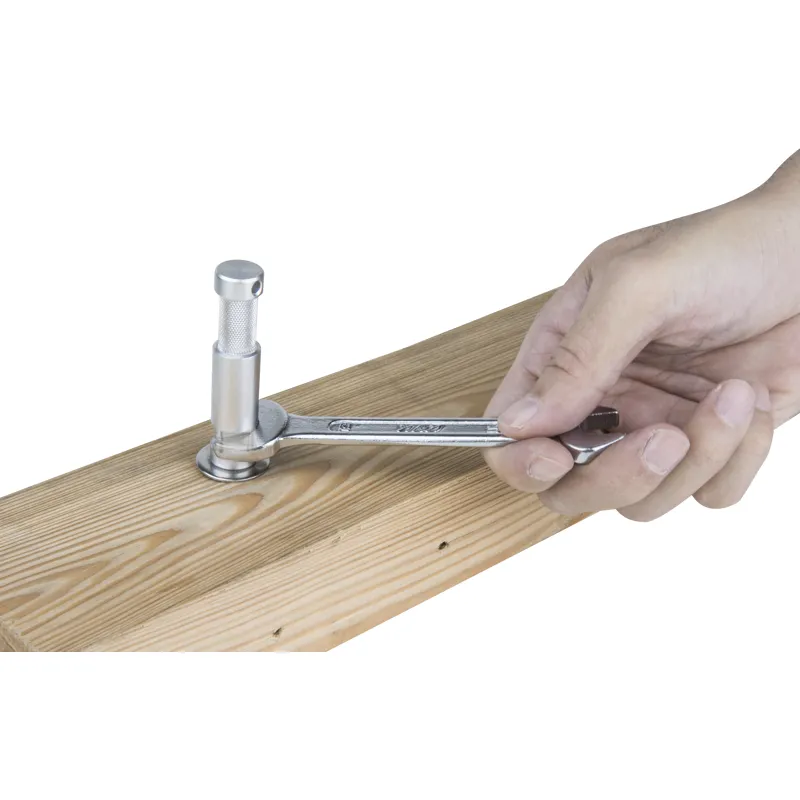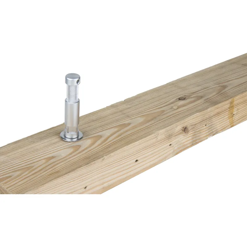 Izgatavots no alumīnija, 5/8 (16mm) baby pin ir aprīkots ar M8 koka skrūvi, kas ļauj to pastāvīgi vai pagaidu veidā piestiprināt tieši pie koka virsmas. Tam ir 4 plakani virsmas uz baby pin, kas atvieglo skrūves pievilkšanu vai atslābināšanu ar instrumentu.