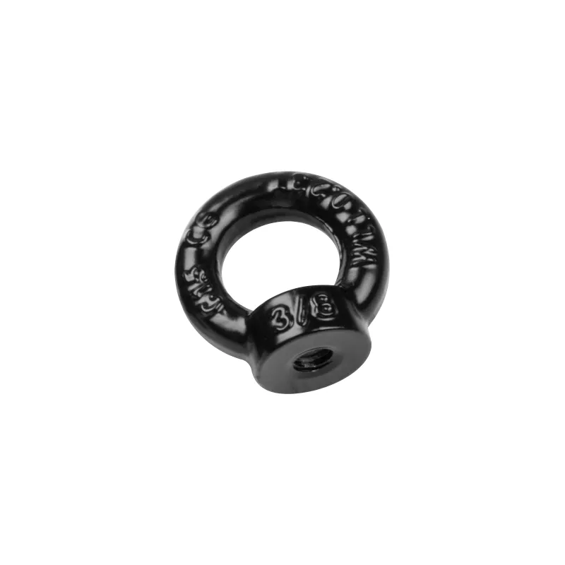 Melna pārklāta tērauda gredzenveida uzgrieznis ar 3/8-16 sieviešu vītni ir ideāls, lai pievienotu objektam, izmantojot 3/8-16 skrūvi (nav iekļauta) āķiem vai kabeļiem.
