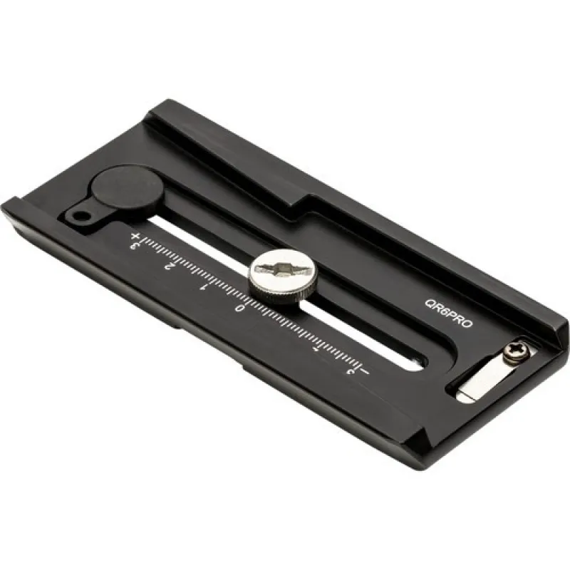 Benro ātrās atbrīvošanas plāksne S6Pro video galviņai ir iebīdāma kameras plāksne, kas ir saderīga ar Benro S6, S7 un S6Pro statīva galviņām. Tam ir 1/4"-20 kameras īkšķskrūve un reģistrācijas tapa, lai novērstu sagriešanos. Tā augšpusē ir arī neslīdošs gumijas polsterējums, kas nodrošina labāku atbalstu jūsu kamerai. Kompaktā plāksne ir veidota ar noapaļotām malām un lāzera starojumu. iegravēti marķējumi, kas palīdz padarīt līdzināšanu ātrāku un vienkāršāku.