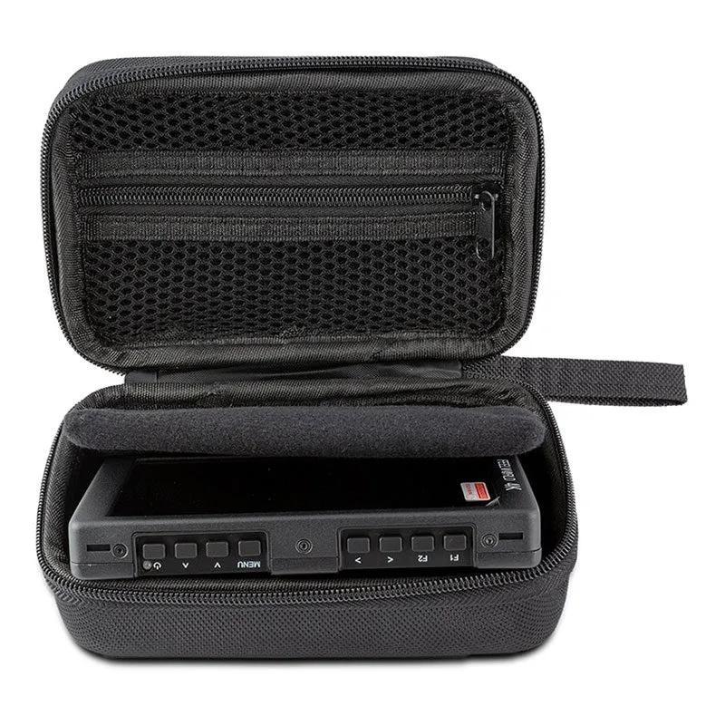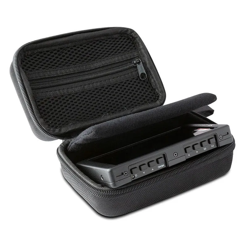 This Feelworld Bag protective hard case is designed for the safe transport and storage of a 6 inch field monitor or smaller. The lid features a zippered mesh pocket for storing small accessories and cables. The shockproof and dustproof case closes with a zip and offers all-round protection. The sturdy exterior is made of water-repellent EVA. The bag is carried by the handy handstrap.