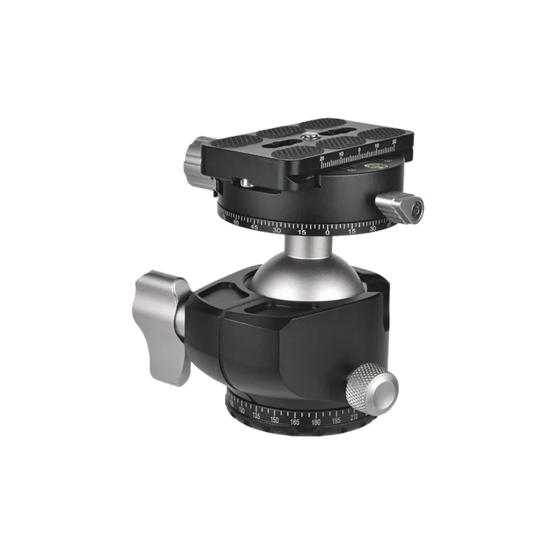 The Caruba D-40 Camera Ball Head can be tilted 45 degrees in all directions. Place your equipment in the desired position and lock it with the large and easy to operate dial. The ball head also features two 90-degree notches, allowing you to shoot both horizontally and vertically.