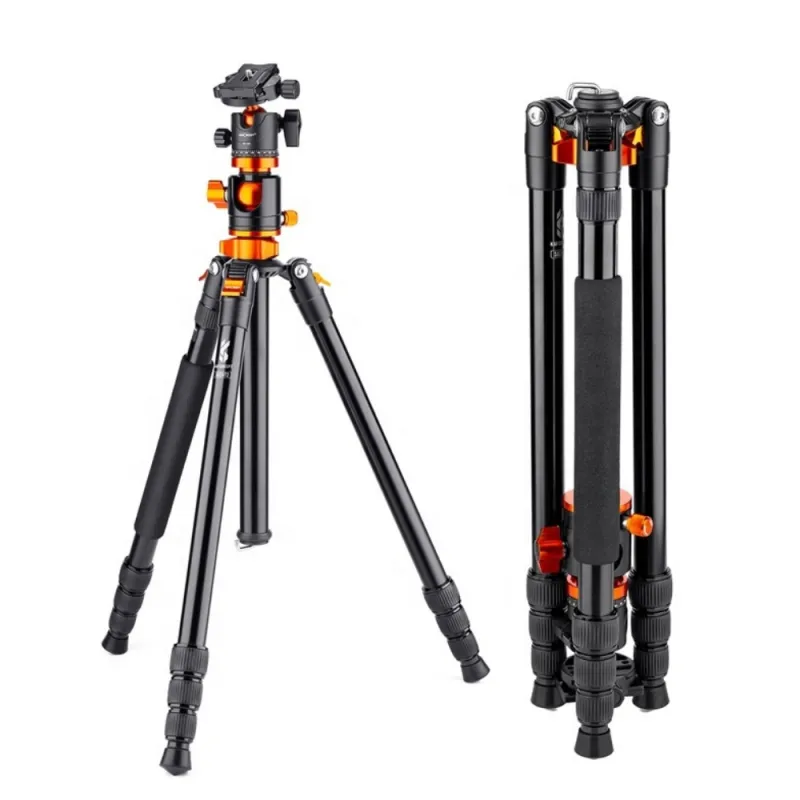 The 09.090 aluminum tripod from K&F Concept is a lightweight travel tripod with the ability to position legs independently for use on uneven terrain. The legs feature large flip locks for quick setups, and may be inverted for low-level shooting or folded to a length of approx. 48 cm for comfortable transport. A removable leg converts the tripod into a monopod plus its center column may be combined with it to reach a maximum height of approx. 195 cm. The included 28mm ball head with Arca quick release features an independent pan-lock for panoramic shots, and engraved scale.