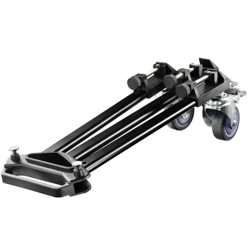 With its smoothly running wheels, these Dolly is especially suitable for the use in the studio. The sturdy construction provides high load capacity. The complicated moving of your tripod can be realized with this Tripod Dolly very quickly and precisely. It can be loaded up to 50kg. You can easily mount your tripod by seizing the knurled screw on the Dolly.