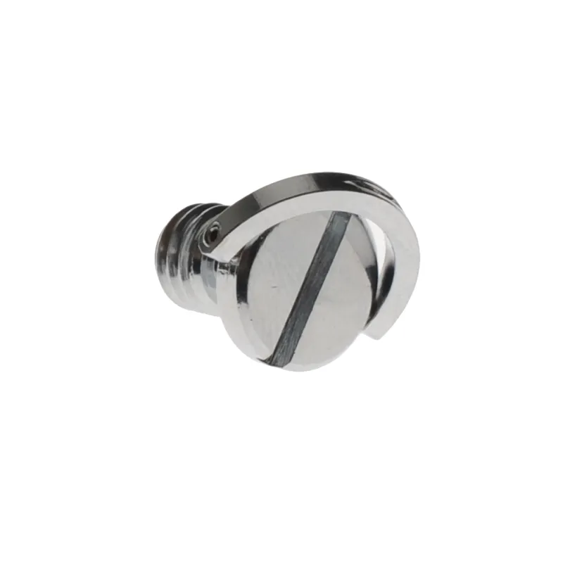 The Caruba 3/8 Screw with D Ring is a spare replacement screw with a 1/4 thread and a D ring. The screw has a width of 14mm without the D ring and a width of 17mm with the D ring. The total length of the screw is 16mm. A screw such as this one are often used to attach a quick release plate to your camera.,