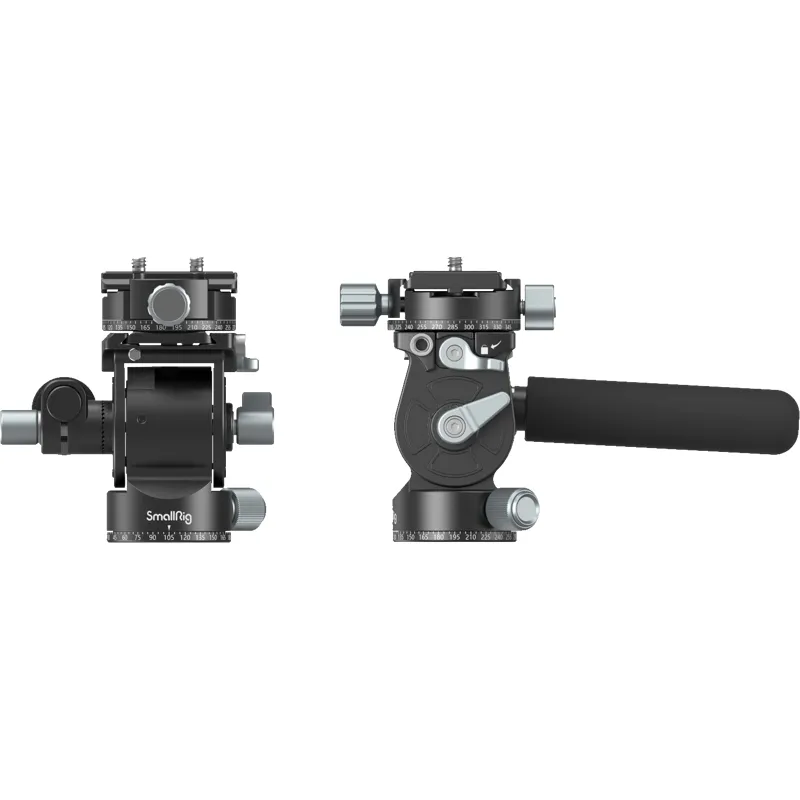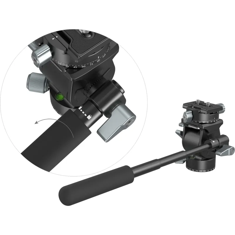 SmallRig Lightweight Fluid Video Head 3457 is specially designed for videoing and photography. It features panoramic panning and is Arca-swiss QR system compatible, allowing being fitted directly with Arca-swiss cages and L brackets. You may adjust its center of gravity back and forth by turning the side knob when using large lenses or mounting camera horizontally. The head comes with a removable telescopic handle that supports 360° swivel and one 1/4''-20 threaded hole to fit a magic arm for such devices as monitor, microphone, image transmitter or even camera. A built-in spanner is also included for removing or installing quick release plate.
