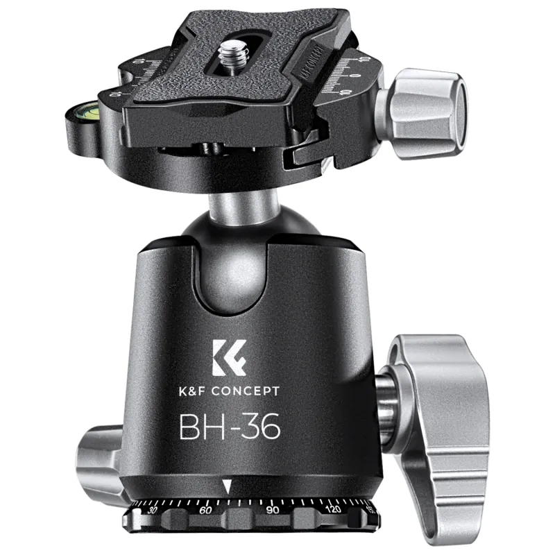 K&F METAL 36MM TRIPOD BALL HEAD, 295G SVARS, CNC PROCESS AR DIE CASTING HOLDER, BLACK AND GRAY, 3