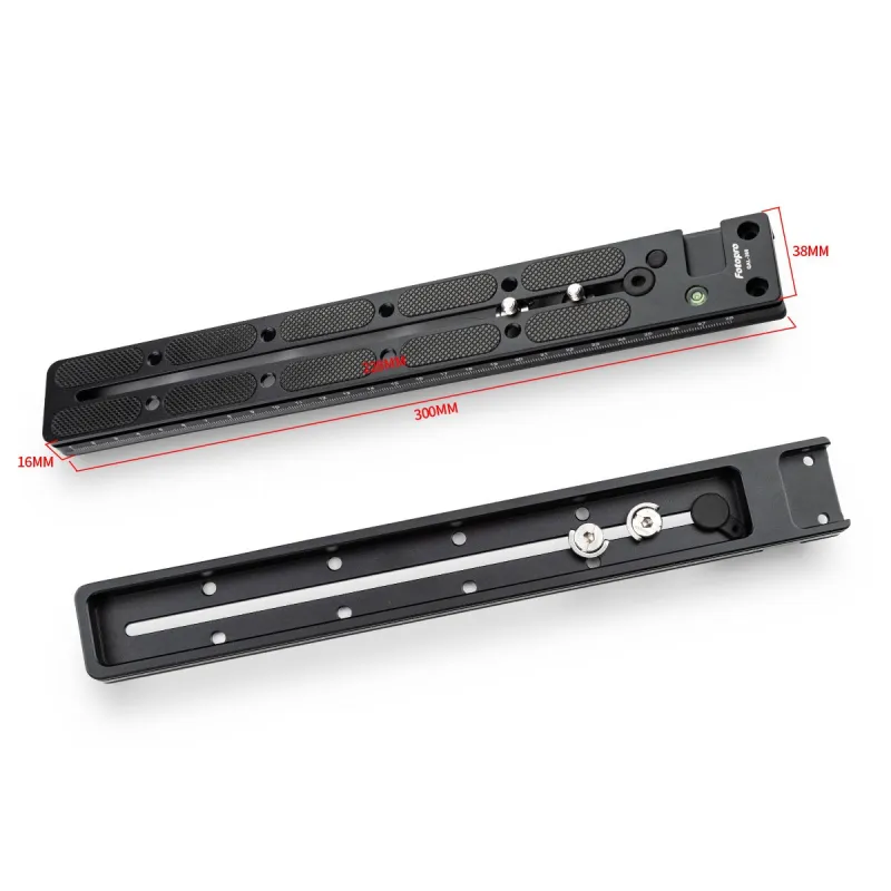 The Fotopro Long Quick Release Plate QAL-300 can be attached to the lens base to extend the adjustment distance. By moving it back and forth, the overall balance and stability will be enhanced. It has smooth edges and corners thanks to the CNC precision cutting process. Multiple anti-slip pads provide a tighter fit and prevents scratches. It also features 8 expansion holes for accessories