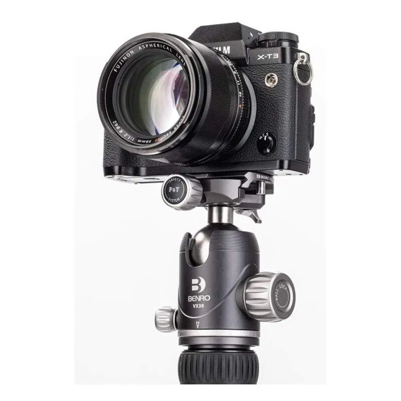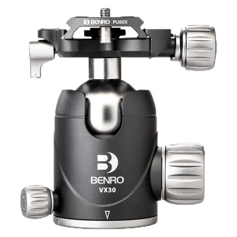Benro VX30 Two Series Arca-Type alumīnija lodveida lodveida galva ar elegantu un minimālistisku dizainu un lielisku izturības un svara attiecību piedāvā dubulto panorāmas režīmu, kas papildus ātrās noņemšanas platformai ļauj panoramēt galvu arī no tās pamatnes. Vadības ierīces ir vienkāršas, ar galvenajā fiksācijas slēdžā iebūvētu lodīšu berzes regulēšanas funkciju un neatkarīgu panorāmas slēdzi. Šī jaunā dizaina lodveida galva ir aprīkota ar ātrās atbrīvošanas platformas drošības slēdzeni, un komplektā iekļautais burbuļlīmeņrādis ļauj precīzi nolīdzināt kadru.