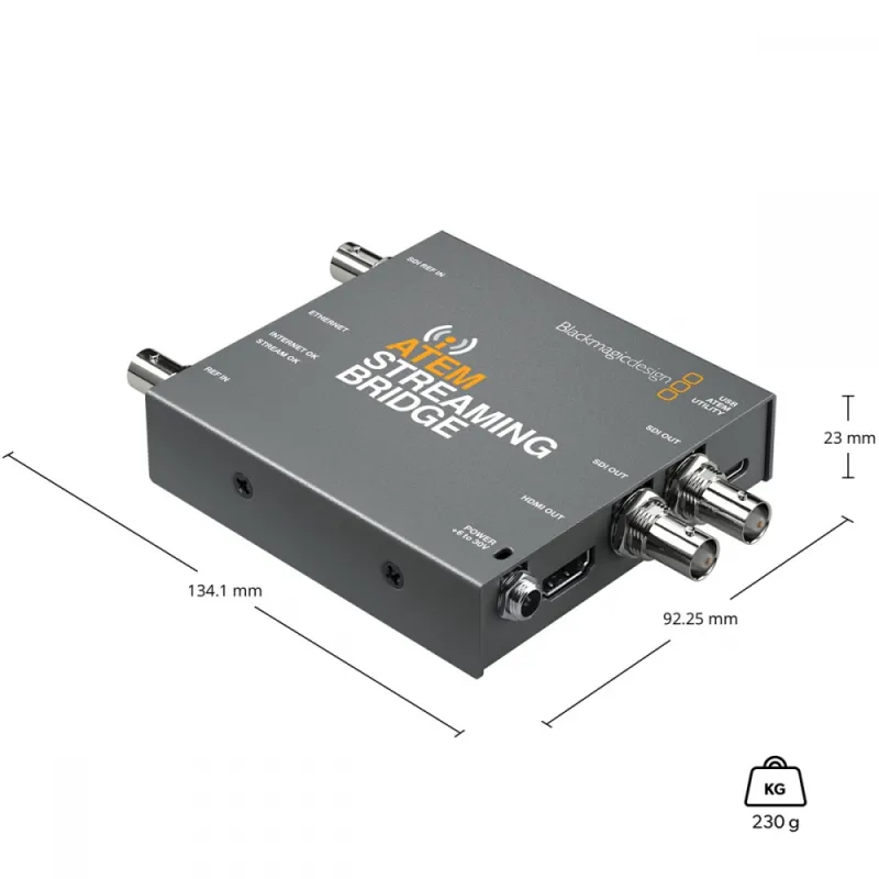 The ATEM Streaming Bridge is a video converter that lets you receive a H.264 stream from any ATEM Mini Pro and convert it back to SDI and HDMI video. This means you can send video to remote locations around your local Ethernet network, or via the internet globally! That's possible because it uses advanced H.264 codecs for higher quality at very low data rates. Imagine broadcasters and bloggers collaborating on shows and creating global networks of ATEM Mini Pro remote broadcast studios. Setup is easy as the ATEM software utility can create setup files that you can email to remote ATEM Mini Pro studios. ATEM Streaming Bridge is the perfect way to use ATEM Mini Pro as a remote broadcast studio!