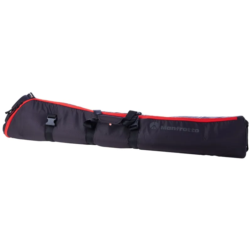 MBAG120PN ir viegla, polsterēta statīva soma, kas izstrādāta jūsu statīva kopā ar uzstādītu galvu aizsardzībai. Somai ir asimetriska konusveida forma, kas ļauj tajā uzglabāt statīvu ar piestiprinātu galvu. Statīva kājas ērti iegulst šaurākajā galā. Galvenais rāvējslēdzējs stiepjas visā somas garumā, apvijoties ap augšējo daļu, kas ļauj to vienkārši atvērt un satvert statīvu. Termoformēts polsterējums aizsargā statīva galvu transportēšanas laikā. Iekškabata ietilpina dažādus aksesuārus, piemēram, video galvas panoramēšanas rokturus. Somu var pārnēsāt, izmantojot iekļauto plecu siksnu.