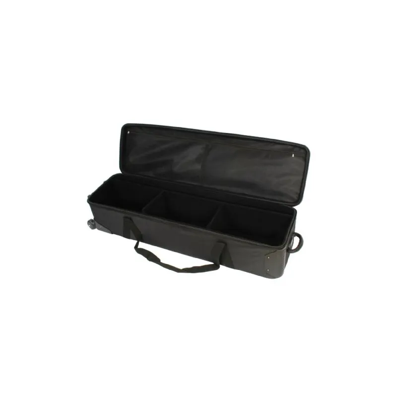 This heavy Falcon Eyes Bag on wheels is an aid for carrying your studio equipment easy and safely. The reliable bag comes with a hard, protective outside. The inside is soft lined and provides an optimal protection for your flash units. The bag is suitable for many different flash units because you can choose your own lay-out. The bag offers a lot of space so you can also bring your stands, cables, softboxes and umbrellas besides your studio flash units. The bag comes with two sponge boxes, with cylinder holes in them. These boxes can be used for transporting small objects, such as modeling lamps.