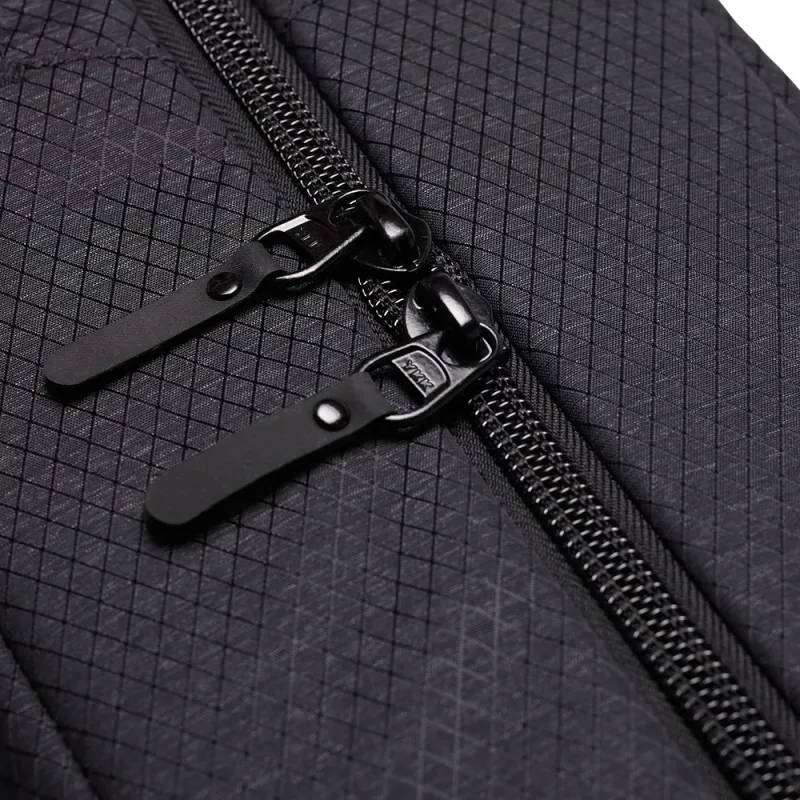 Gudra uzglabāšana, nevainojama organizācijaDroši uzglabājiet savus aksesuārus ar rāvējslēdzēja iekšējo kabatu un slēptu nodalījumu izsekošanas ierīcei. Regulējama Velcro siksna stabilizē statīvu, un ārējais vārda zīmes turētājs vienkāršo identifikāciju aizņemtās vidēs.