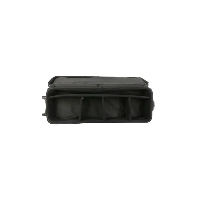 The large and firm Falcon Eyes CC-06 bag with an inner diameter of 100 x 30 x 20 cm is very suitable for the larger studio flash sets. In addition, the bag is very suitable to transport large studio accessories for use on location. The bag is equipped with carrying handles and a trolley system with retractable handle, in order to use the bag as a trolley. The bag can be easily divided using the three adjustable dividers. The exterior of the bag is made of hard material which makes the bag suitable for frequent use. The bag is quick and easy to open by means of one zipper.