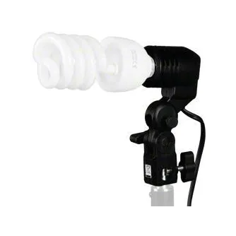 The umbrella holder for a sync flash is ideal for all sync flash lamps and spiral lamps with E27 socket up to max. 250W. It can be rotated by 360° and tilted by 180°, and is therefore extremely flexible. The on and off switch is located directly on the body. When you are working with a compact flash, the lamp holder is ideal for mounting a spiral lamp as a modeling lamp.