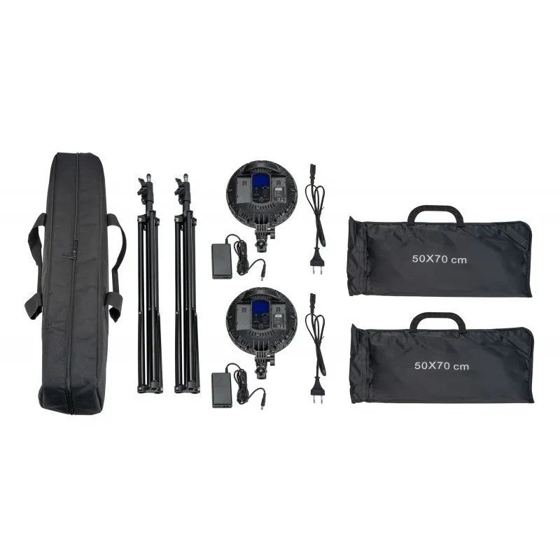 Newell Sparkle LED apgaismojuma komplekts ļaus jums pašiem uzņemt profesionālas produktu fotogrāfijas. Viens pirkums ir viss, kas nepieciešams, lai izveidotu izsoļu vietnēs un tiešsaistes veikalos izmantotus attēlus bez ēnām un estētiski pievilcīgas fotogrāfijas. Komplektā ietilpst 2 Newell Sparkle LED gaismas, 2 barošanas avoti, 2 statīvi, 2 50 x 70 cm mīkstās kastes ar vāciņiem un soma. Pārnēsājamas studijas uzstādīšana jebkurā vietā aizņem tikai dažas minūtes. Šī būs labākā alternatīva komplektiem, kuros tiek izmantotas studijas spuldzes. Katra LED paneļa maksimālā gaismas plūsma ir 1650 luksi. Gaismas piedāvā arī krāsu temperatūras kontroli un iespēju tos darbināt ar uzlādējamām baterijām.