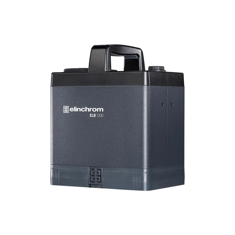 The EL 1200 runs on your choice of two separately purchased lithium-ion batteries. The standard Air battery will give you 215 full-power flashes and 80 minutes of run time for the LED modeling light. The more powerful HD battery provides 400 full-power flashes and 120 minutes of run time. One of these batteries and a charger are required for use of the ELB 1200.