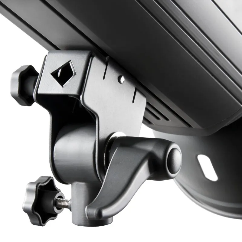 The highlights of this series include the built in 2.4 GHz receiver with 16 channels and 4 groups. When used with several flashes, each flash can thereby be separately controlled - for higher flexibility. All settings, like flash power or modelling light, can be conveniently made via the separately available radio remote trigger, but also by using the clearly arranged and user-friendly control panel on the flash itself. The power can be regulated from 1/1 to 1/32 and is, just like the 150W modelling light, infinitely and proportionally adjustable, whereby the light power can be exactly adapted to the prevailing lighting conditions. All settings are perfectly readable on the LED-display. The flash can be triggered via a Sync Cord, the built-in photo cell, via the test button or via the additionally available convenient radio remote trigger. A very strong cooling fan protects against failure caused by overheating.