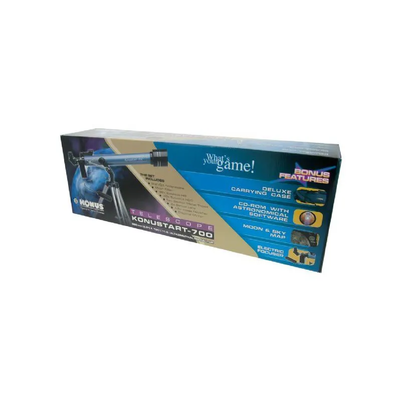 This Konustart-700 telescope is an ideal choise for young astronomers. It can be used for earth and astronomical observations and it is easy to use. We added to the normal rich equipment a textile carrying case, in order to carry the telescope everywhere and we also include a professional astronomical software to ease the study of the Sky, find out the co-ordinates of celestial objects which are observing, the dates in which they will be visible all over the world and other important functions.
