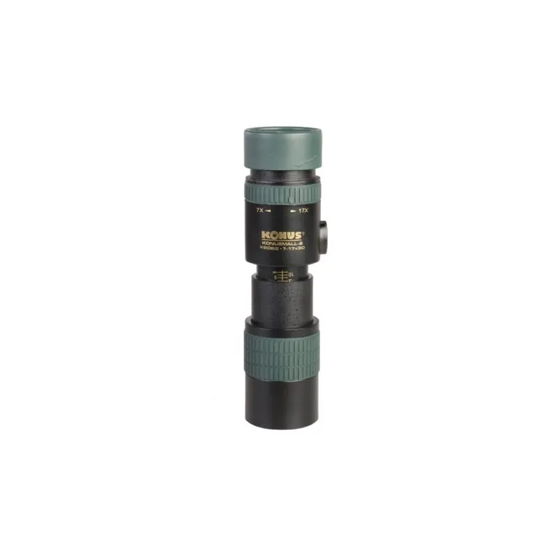 Konus monokulārs Konusmall-2 7-17x30 ir ļoti kompakts monokulārs ar mainīgu palielinājumu no 7 līdz 17x. Monokulāra diametrs ir 30 mm, tāpēc jums ir pieejams labs attēls, tas sver tikai 156 gramus un tāpēc ir ērti nēsājams, piemēram, pie jostas. Monokulārs ir unikāls savā veidā, tirgū reti sastopami monokulāri ar mainīgu palielinājumu. Pateicoties gumijas rokturim, monokulārs viegli iekļaujas rokā un ir aprīkots ar siksniņu, ko varat uzvilkt uz rokas. Objektīvam ir daudzslāņu pārklājums, kas neļauj netīrumiem un ūdenim pieķerties objektīvam, tāpēc jūs jebkurā laikā saglabāsiet asu attēlu.