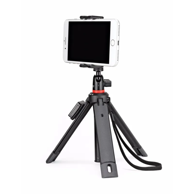 This selfie stick tripod is designed for mobile! Use as a handgrip, monopod, elevated stand or telescoping tripod. Perfect for vlogging, selfies and more! Securely holds small 360 cams, phones and phones with 360 camera attachment.