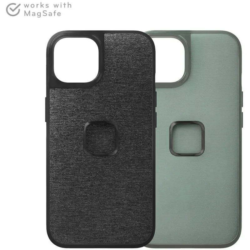 A phone case with the perfect balance of slimness, smart aesthetics, and protection, plus it brilliantly connects to the entire Peak Design Mobile Ecosystem (and MagSafe accessories, too). Its like a tuxedo for your phone—a tuxedo with a slim 2.4 mm profile and protective rubberized bumper, all wrapped in beautiful nylon canvas shell. But what truly sets the Everyday Case apart is the brilliant magnetic/mechanical lock thats built right into it. We call this mounting technology SlimLink™, and its so fast and secure that it borders on magic. With this case on your phone, you can instantly connect to all Peak Design Mobile mounts, chargers, and accessories. It even works with Apple MagSafe chargers and accessories, too.