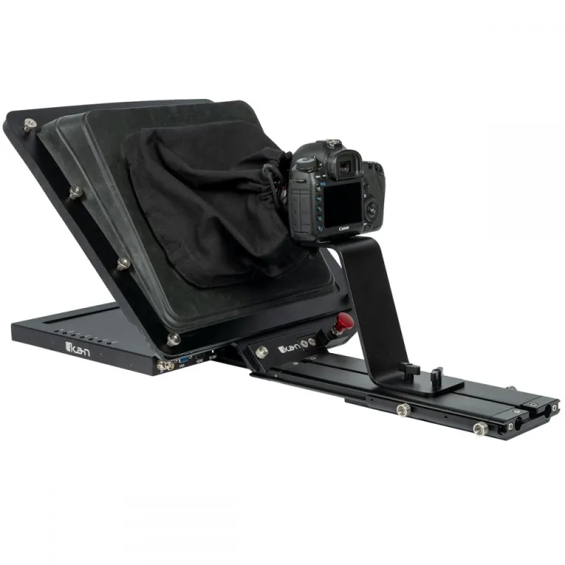 Ikan’s professional teleprompter series is designed for a quick and easy setup to work efficiently in outside broadcast applications or professional studios. The lightweight aluminum teleprompter has multiple 3/8-16″ and 1/4-20″ for mounting to a pedestal.