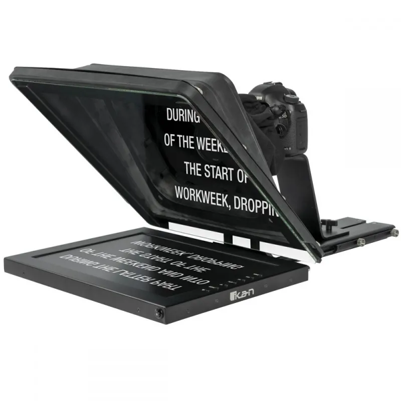 Ikan’s new professional teleprompter series is designed for a quick and easy setup to work efficiently in outside broadcast applications or professional studios. The lightweight aluminum teleprompter has multiple 3/8-16″ and 1/4-20″ for mounting to a pedestal.