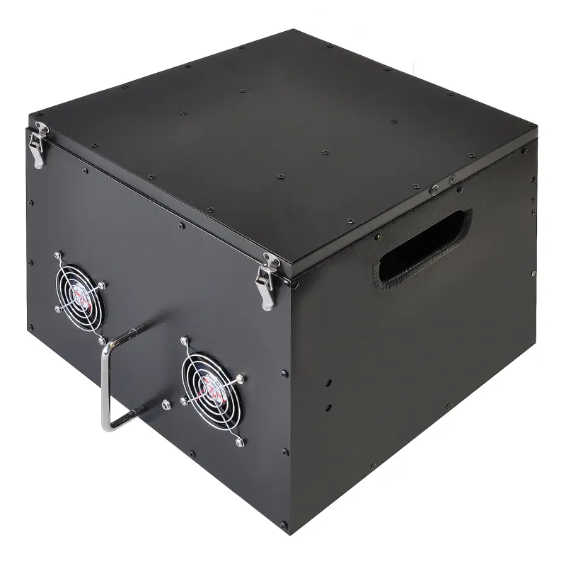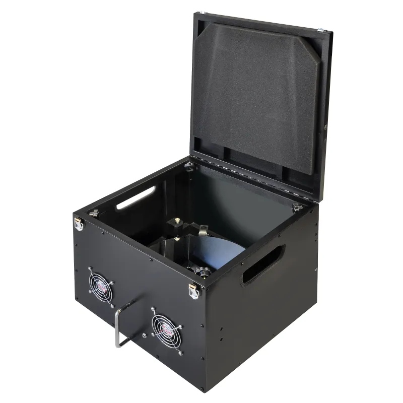Secondary unit and altitude wheels fit into the rocker box and the mirror box includes a cover for transport so that the whole telescope breaks down into only two aluminium cases and the trusses
